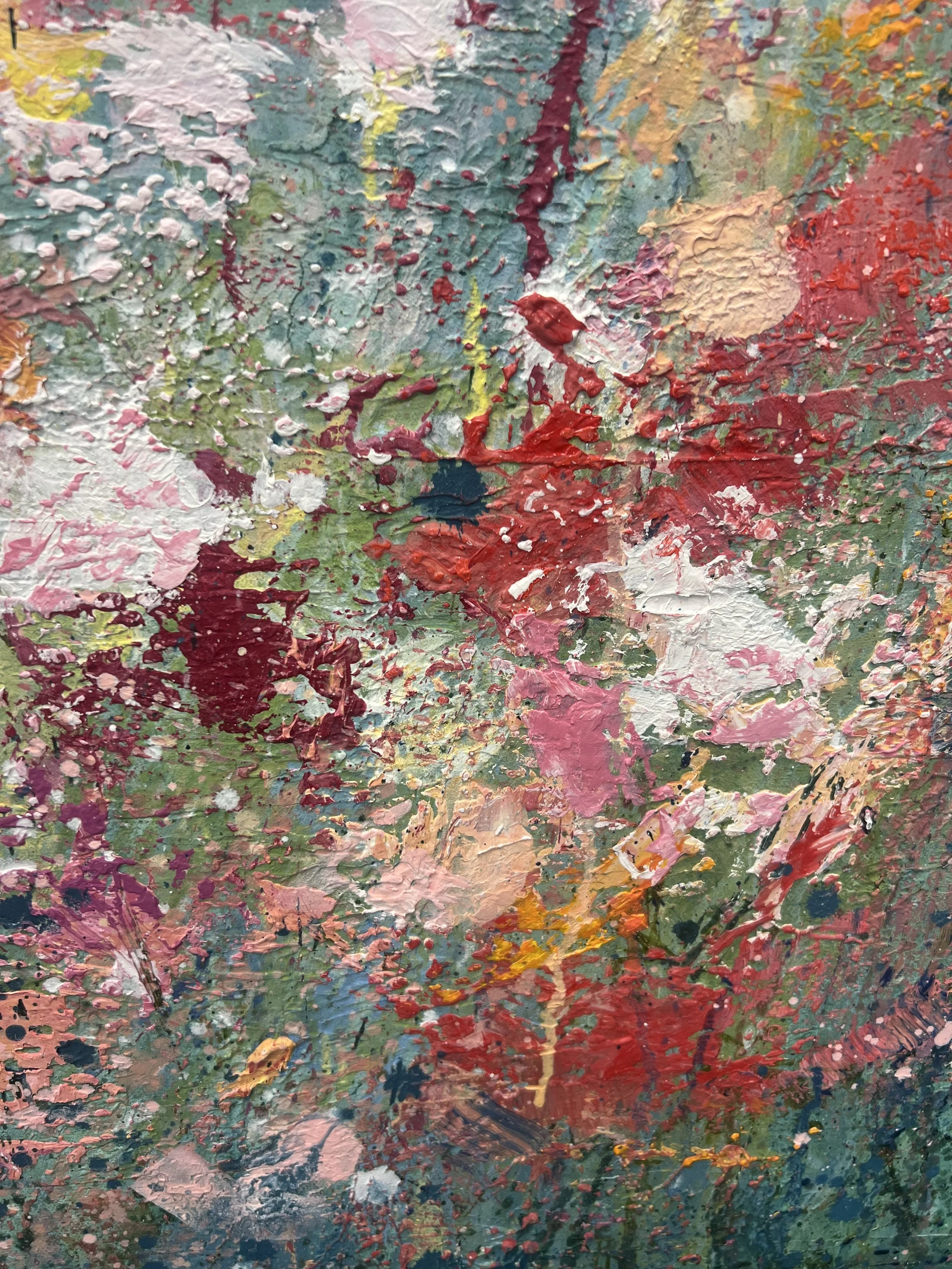 Enquire: https://gallery545.com/pages/artists Created with the artist’s distinctive palette knife technique, ‘Emergent’ bursts with expressive flowers in the foreground, their colours and forms alive with energy 90 x 120 x 3cm Oil, gesso and mixed media on canvas