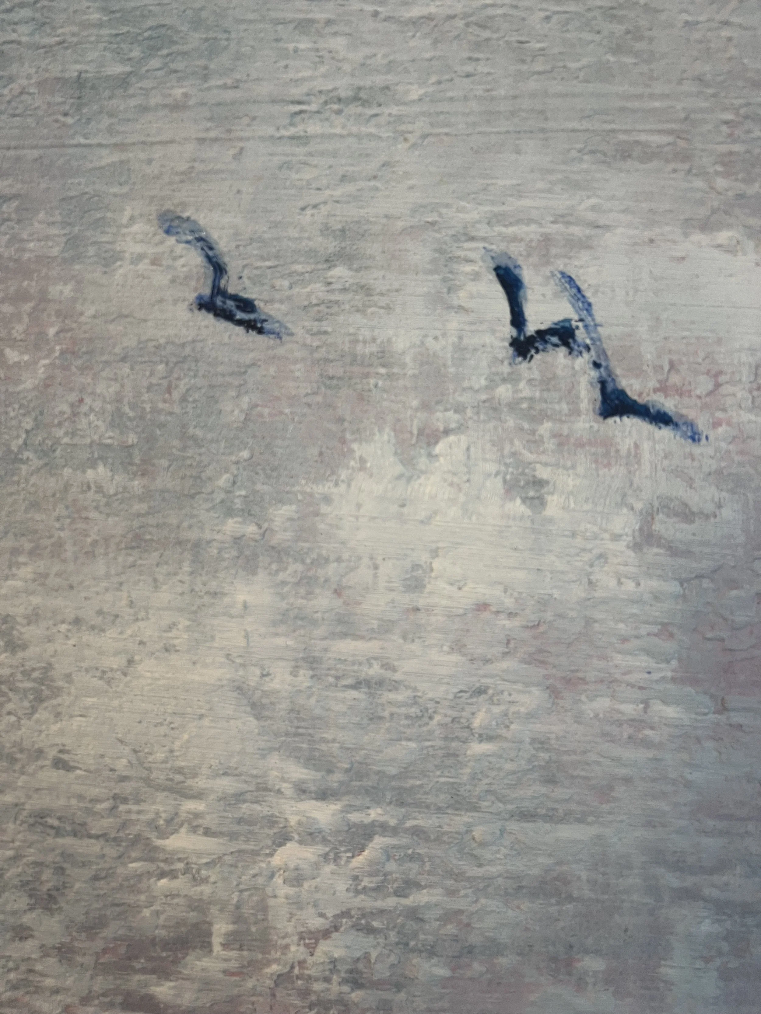 Created with the artist’s distinctive palette knife technique, ‘FREE’ transitions in a luminous ombré from sky to earth, with birds soaring freely above vibrant, colourful flower fields that ripple across the landscape